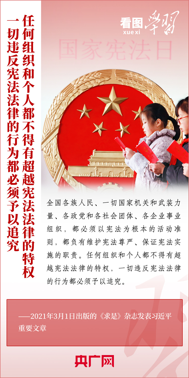 憲法是國家的根本法,是黨和人民意志的集中體現(xiàn)。尊崇憲法、學(xué)習(xí)憲法、遵守憲法、維護(hù)憲法、運(yùn)用憲法,是每個公民的義務(wù)。在第十個國家憲法日(12月4日)來臨之際,《看圖學(xué)習(xí)》欄目為您梳理習(xí)近平總書記關(guān)于憲法的重要論述。一起來學(xué)習(xí)!
